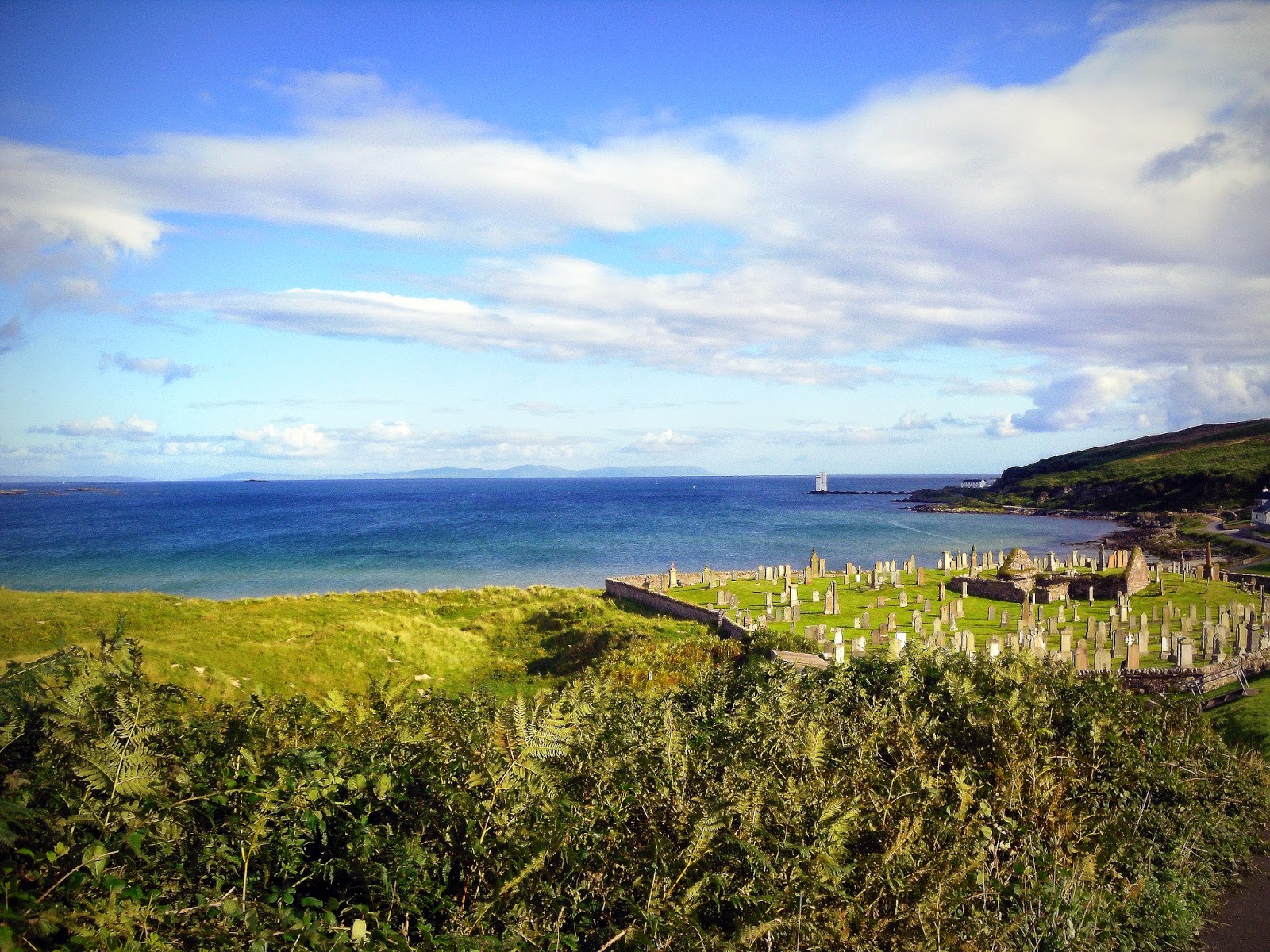 I came across the beautiful old cemetery of Kilnaughton, centered around the ruins of the old chapel and some rogue highland cows were blocking to road.